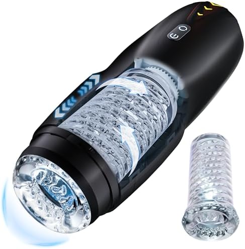 Automatic Male Masturbator – 8 Thrusting & Rotating Modes with 3 Speeds, Clasp Soft TPE Sleeve, LED Indicator & Blue Light Window, Discreet Pocket Pussies for Men, Home & Travel Adult Toy