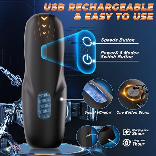 8 Thrusting & Rotating Modes with 3 Speeds: Experience ultimate stimulation with this male masturbator that combines 8 thrust-and-rotate patterns and 3 adjustable speeds. Whether for stamina training or quick relief, this sex toy for men adapts to different needs