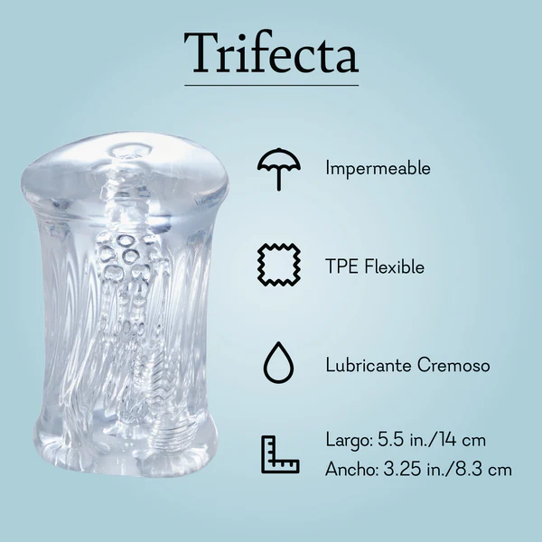 Why make a choice when you can have it all? Say hello to Trifecta, our multi-channeled masturbator that puts pleasure in your hands.Â